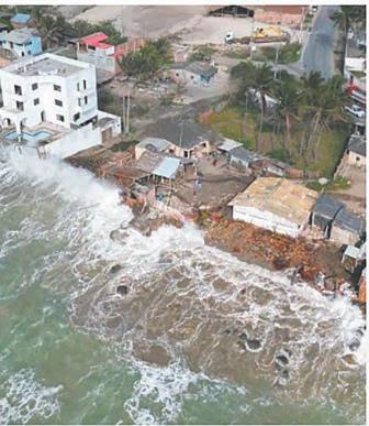 La fuerte marea, con olas de tres metros, está golpeando caletas y desembarcaderos del litoral en las regiones de Tumbes y Piura, fronterizas con Ecuador.