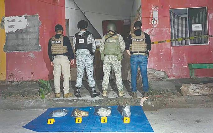 El operativo se llevó a cabo en la colonia Prado del Sur, donde auto ridades aseguraron un cargamento de sustancias químicas y armamen to, según informó la Fiscalía Gene ral de la República (FGR). Entre los materiales incautados se encuentran aproximadamente mil 220 litros de un líquido con características propias de la me tanfetamina, 95 kilogramos de la misma sustancia en estado sólido, así como 209 cartuchos de diver sos calibres, cuyo uso está restrin gido exclusivamente al Ejército, la Armada y la Fuerza Aérea.