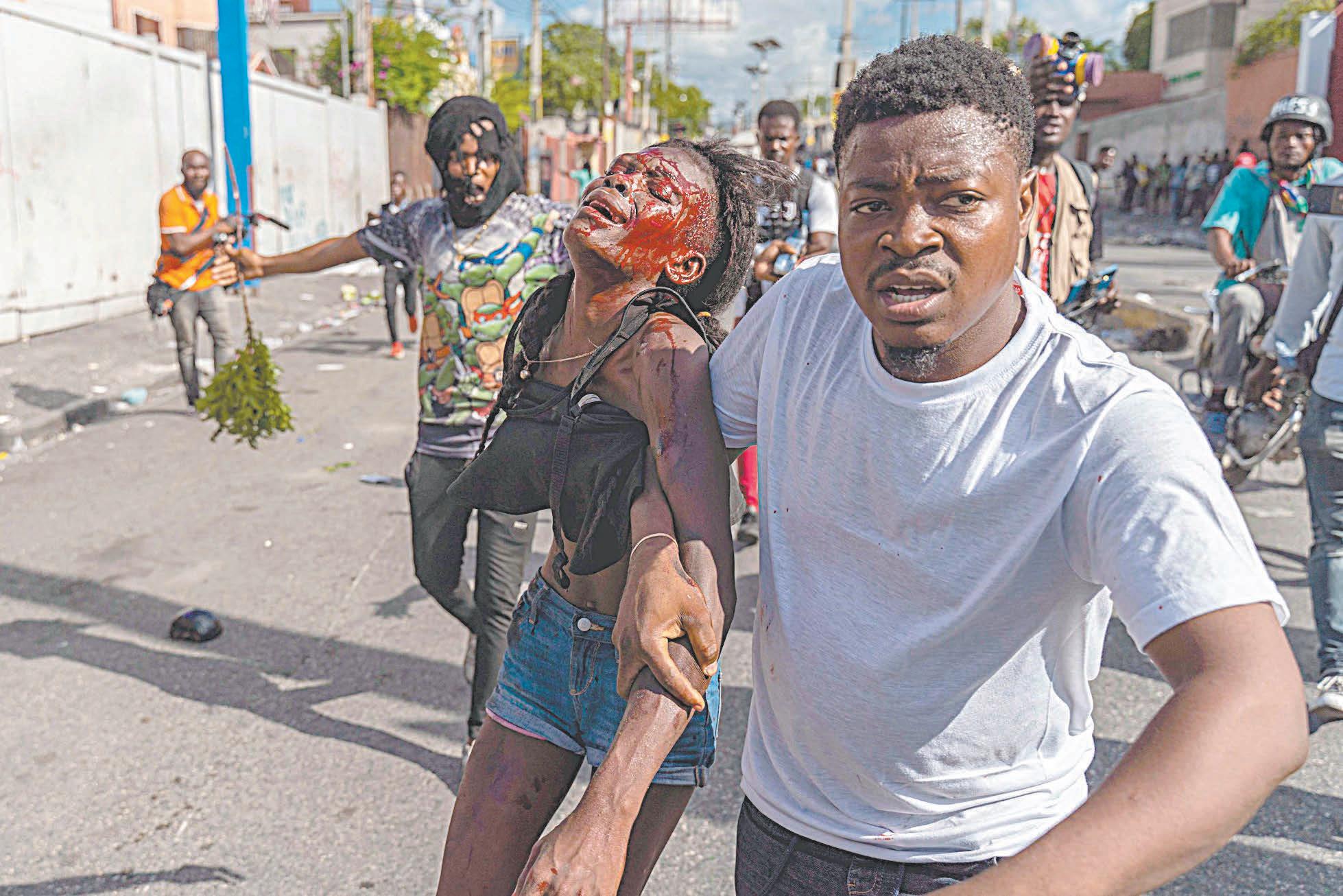 Previamente, los manifestantes derribaron una primera hilera de vallas metálicas que había sido colocada por las autoridades para proteger la fachada del Palacio Nacional.