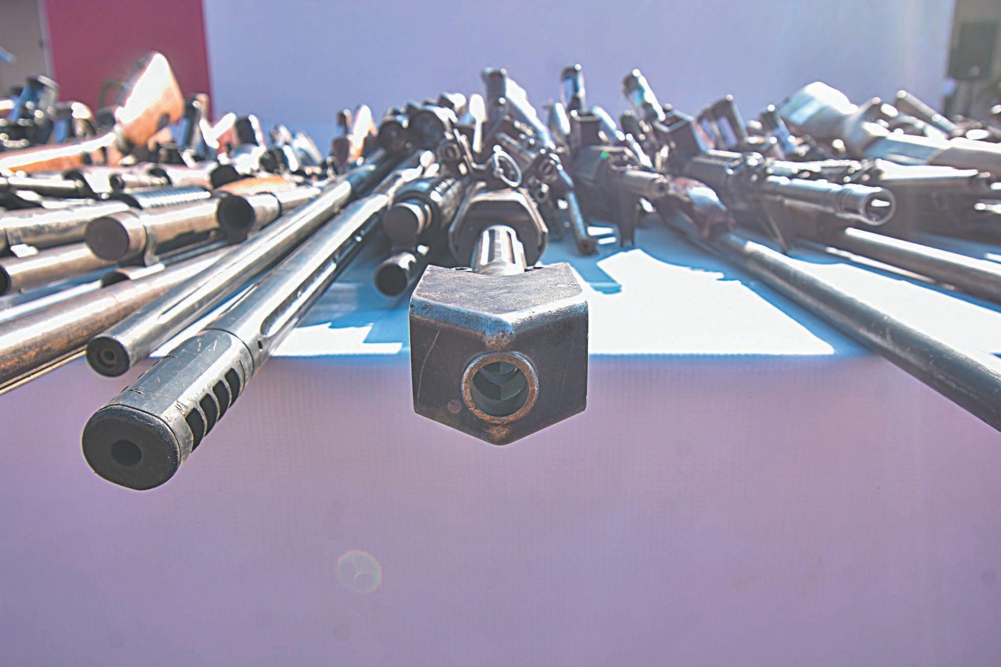 A los arrestados se les aseguraron tres armas largas calibre .223, así como dos armas cortas: una de ellas calibre 9 milímetros (mm), y la otra que tenía un calibre de .45 mm.