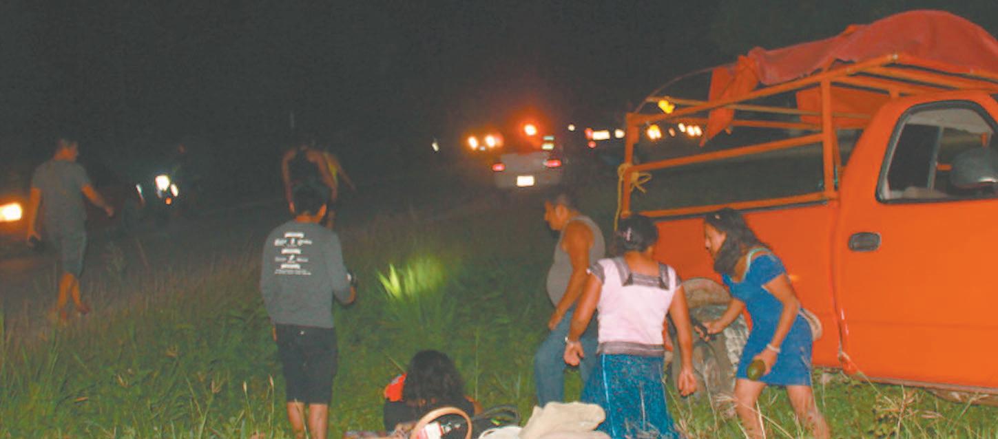 El vehículo, marca Ford, tipo Ranger, color rojo, circulaba de Poniente a Oriente con rumbo a la ciudad; algunos de sus ocupantes fueron proyectados sobre el asfalto. (Justino Xiu)