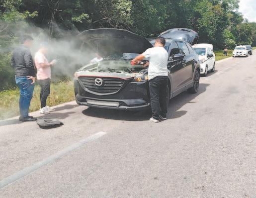 El choque no fue frontal, sino que ambas unidades colisionaron de costado, pero eso fue suficiente para que al vehículo particular, de color blanco, se le saliera literalmente el motor del capirote, según la fuente citada, y cayera fuera de la carretera, entre la maleza.