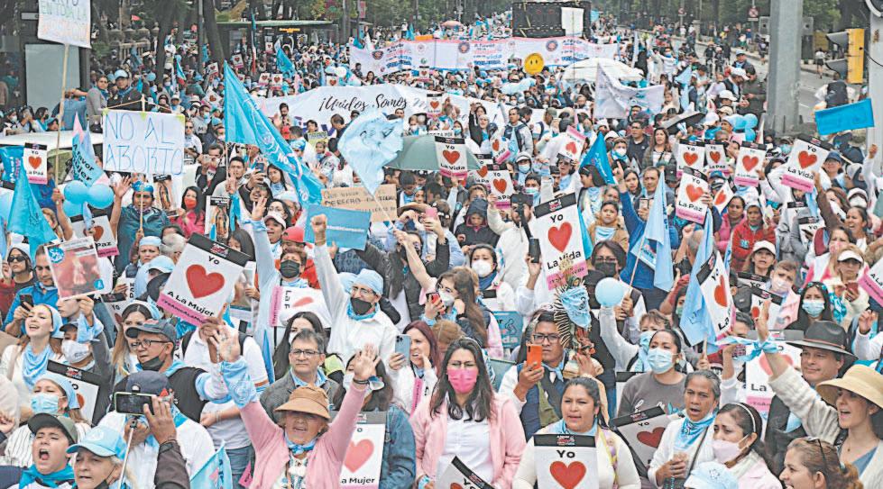 CIUDAD DE MÉXICO.- Miles de personas, entre mujeres, hombres, jóvenes, niñas y niños marcharon ayer por segundo año consecutivo de forma pacífica por las calles de Ciudad de México a favor de la mujer, la vida y la paz.
