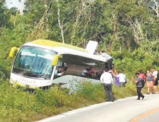 Por Lusio Kauil JOSÉ MARÍA MORELOS.-Dos personas resultaron con lesiones y otras más sufrieron crisis nerviosas, luego de un accidente que se registró ayer, en el que estuvieron involucrados un autobús de la línea Mayab y un automóvil particular. Los hechos ocurrieron en la carretera Federal 185, tramo José María Morelos-Polyuc.