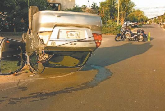 El incidente ocurrió a las 6:00 de la mañana de ayer, en la ciudad capital, cuando una mujer que iba conduciendo a exceso de velocidad su automóvil marca Chevrolet , de color plata, perdió el control de la dirección, chocó contra un poste telefónico y posteriormente volcó, quedando con las llantas hacia arriba.