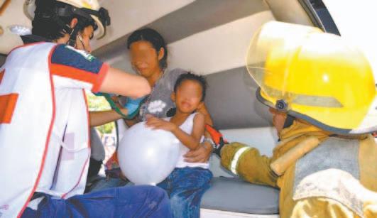 a ocho personas, de las cuales, cuatro presentaron quemaduras de primer y cuarto grado, mientras el resto, entre ellos dos adultos mayores y dos menores, se estaban sofocando por la intoxicación al respirar bastante humo.
