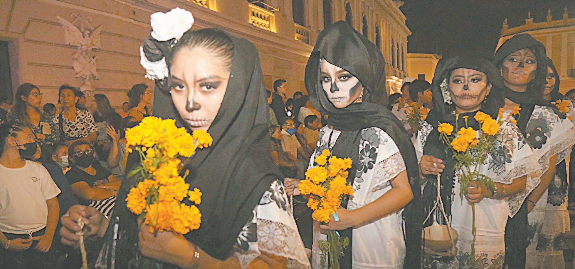 Al paso de los contingentes se podían observar catrinas al más puro estilo de José Guadalupe Posada, dioses prehispánicos, mariachis con rostro de calavera y numerosas representaciones de la famosa pintora mexicana, Frida Kahlo.