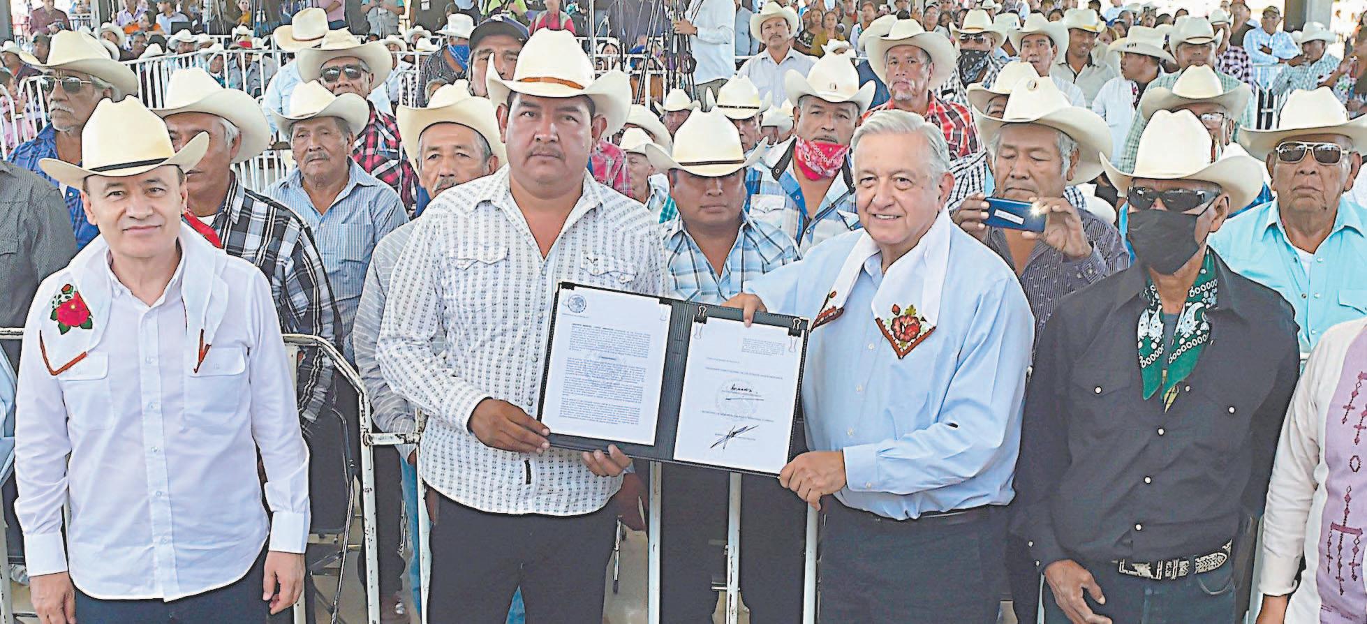 El presidente López Obrador restituyó ayer 29 mil 241 hectáreas de 11 predios por un valor de 420 millones de pesos a la Tribu Yaqui.