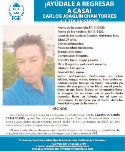 La familia de la víctima reportó su desaparición, por lo que se emitió una ficha de búsqueda. El 3 de
