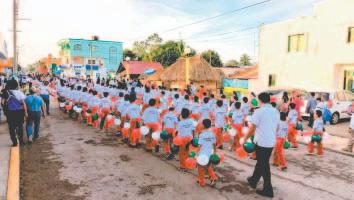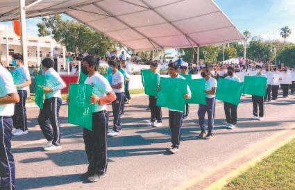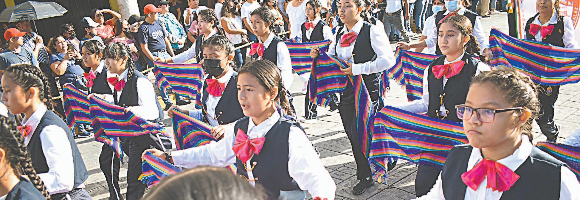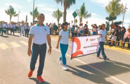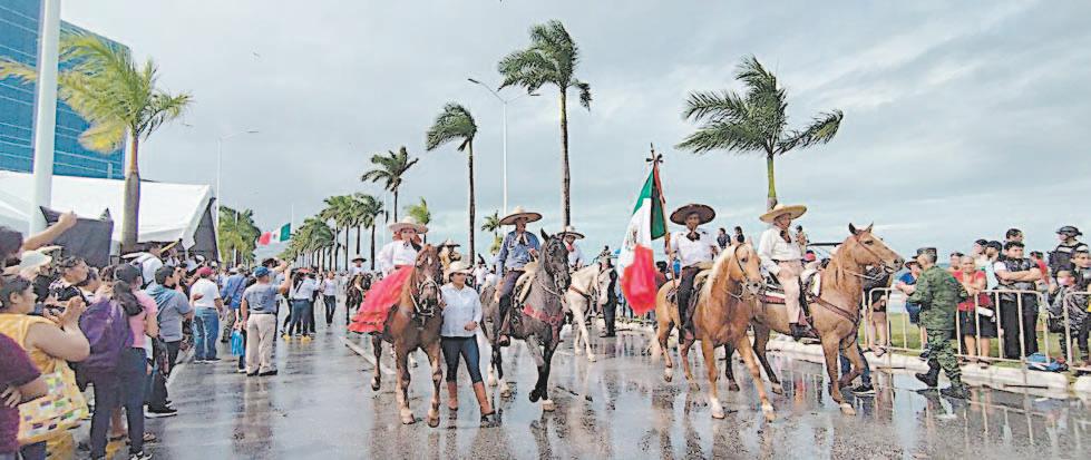 Alrededor de las 10:00 horas empezaron a desfilar diversos contingentes escenificando a personajes como Francisco I. Madero y Venustiano Carranza, entre otros, que se hicieron acompañar por la banda de música y coros de la Sedena, con corridos como “La Adelita” y “La toma de Zacatecas”, entre otros.