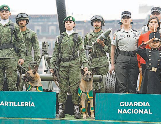 Frente al Hemiciclo a Juárez los asistentes al desfile militar aclamaron y gritaron al unisonido el carro temático en honor a Frida, perra rescatista que recién falleció. También aclamaron a los perros rescatistas del equipo de Búsqueda y Rescate Urbano de la Marina Nacional.
