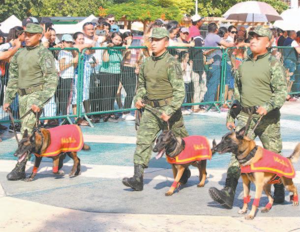 Cientos de asistentes al desfile aclamaron a la elemento canino Frida y a los perros rescatistas del equipo de Búsqueda y Rescate Urbano de la Marina Nacional.