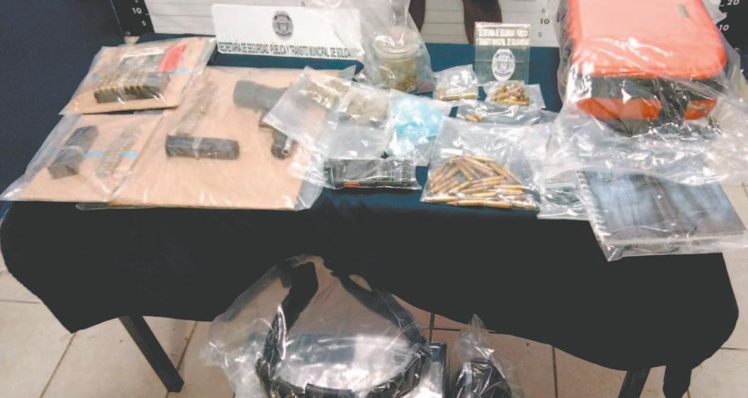 arma de fuego abastecida con 16 cartuchos, un cargador con 13 balas, una maleta que contenía un chaleco balístico, 80 cartuchos de