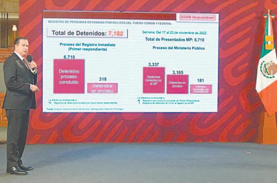 En el Palacio Nacional, Mejía Berdeja destacó que el presunto líder criminal fue capturado desde el pasado 13 de noviembre, por lo que, a una semana del arresto, Silvano “N” ya fue vinculado a proceso penal por los delitos contra la salud, operacio-