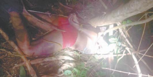Los agentes policiacos encontraron entre la maleza, a unos cinco metros del camino de terracería, el cuerpo de un hombre de aproximadamente 30 años de edad, complexión media, tez morena y cabello negro, que vestía pantalón de mezclilla y playera roja, el cual se encontraba tirado boca abajo.