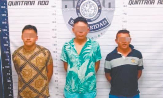Jonathan “N”, de 30 años de edad, originario de Cancún; Manuel “N”, de 28 años, procedente de Yucatán; y Juan “N”, de 18 años, originario de Veracruz, circulaban en un Volkswagen Derby, cuando los oficiales le solicitaron al conductor detenerse y al acercarse