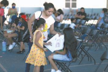 Los menores que asistieron en compañía de sus padres llegaron con cubrebocas a aplicarse la primera o segunda dosis de Pfizer, y no encontraron largas filas de es-