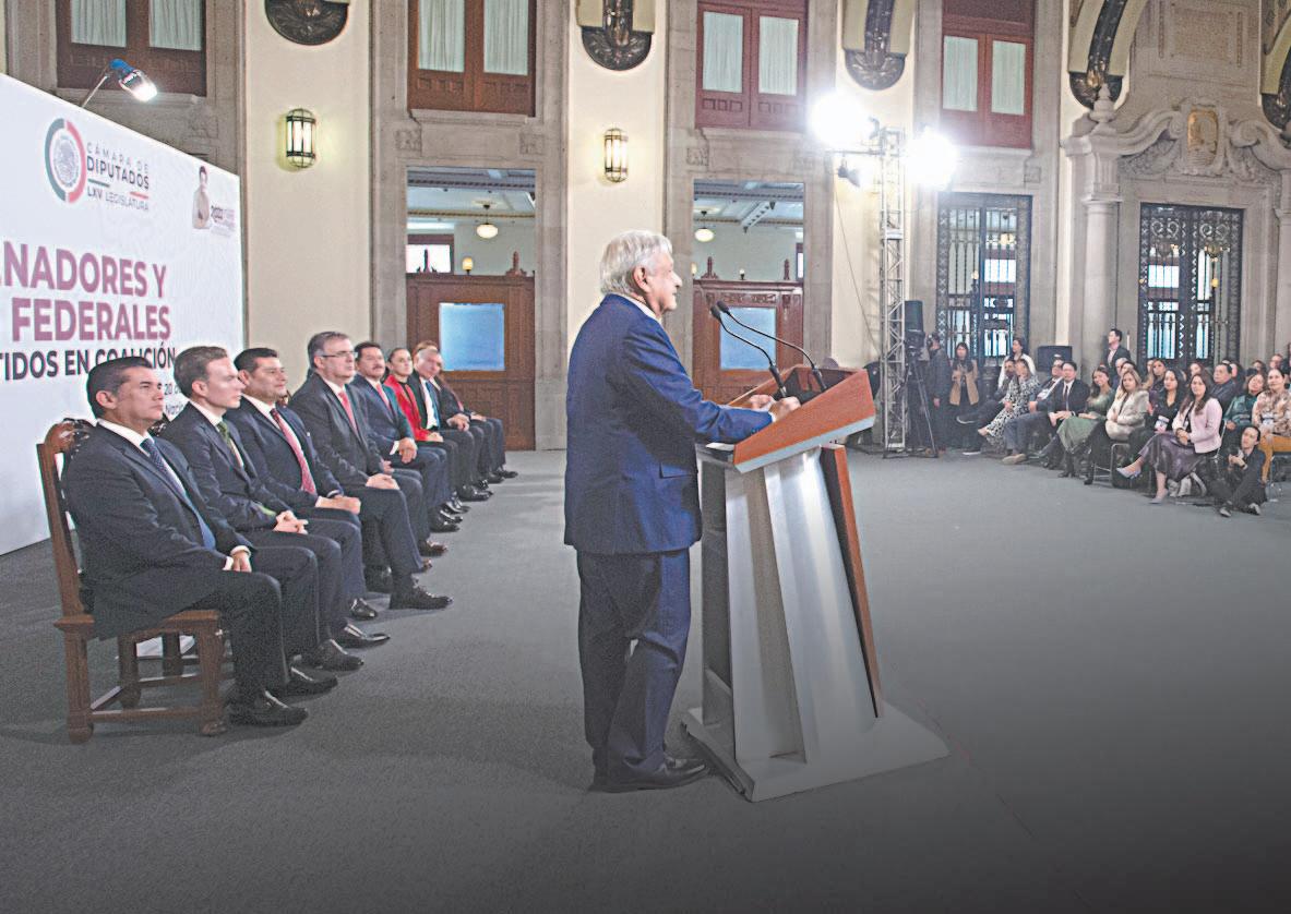 En el encuentro celebrado en el Salón Tesorería del Palacio Nacional, donde el gran ausente fue el senador Ricardo Monreal, quien no apoyó el Plan B electoral que envió el Ejecutivo al Senado, el mandatario federal dijo que se siente confiado porque en el 2024 entregará el mando presidencial a un sucesor con princi-