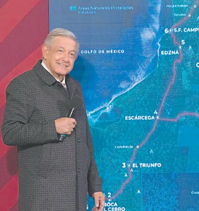 “Vamos a inaugurar en diciembre la obra, aunque el periodo de prueba va a comenzar en julio en un tramo. Estamos viendo si empezamos en el tramo electrificado desde Edzná, bueno, desde Campeche, que no está electrificado, no va a estar electrificado, pero sí de Mérida, Cancún, Tulum, Chetumal, a ver si podemos; si no, en julio para las pruebas sin duda Mérida, Cancún y puede ser Tulum y Chetumal, pero ya vamos a estar muy avanzados (…) y ya para diciembre, todo (obra completa)”, dijo en su conferencia mañanera de ayer en el Palacio Nacional.