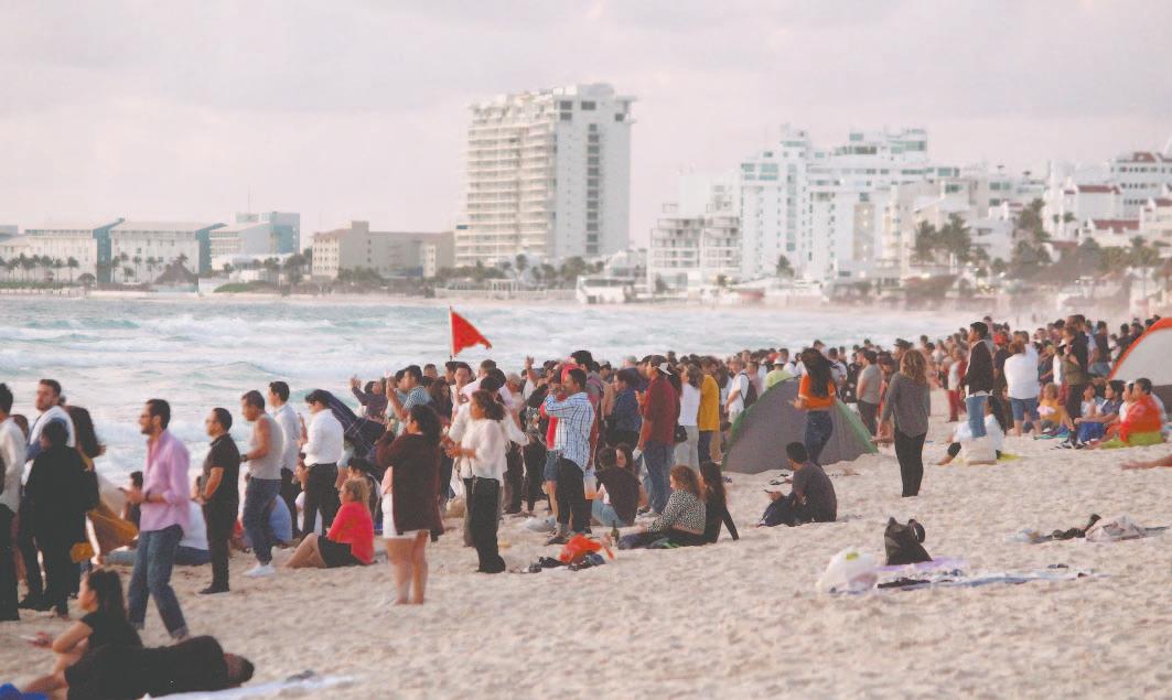 La población comenzó a llegar desde las 4 horas, con la única finalidad de recibir el nuevo ciclo en uno de los arenales mas bellos del Caribe Mexicano. Se reunieron alrededor de 300 personas.