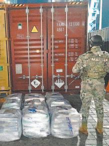 Personal naval y de la Aduana realizó la inspección de un contenedor donde se transportaba fertilizante. Los elementos federales tomaron muestras del material y las analizaron con un equipo especializado, lo que arrojo positivo a presunta cocaína, en 381 paquetes rectangulares.