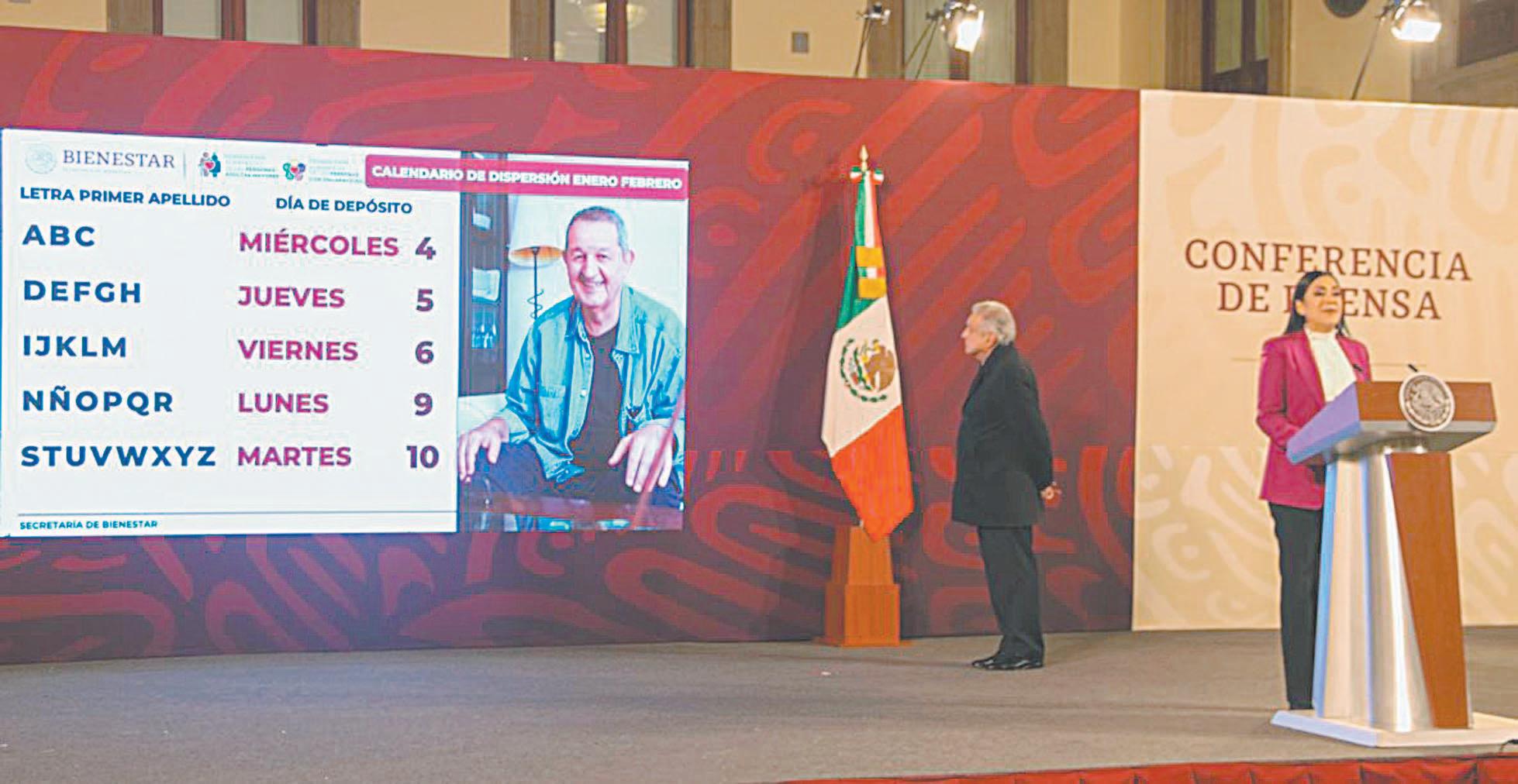 CIUDAD DE MÉXICO.- La Pensión del Bienestar para adultos mayores se podrá cobrar a partir de mañana hasta el martes 10 de enero, dependiendo del apellido del beneficiario, informó ayer la secretaria del Bienestar, Ariadna Montiel Reyes.