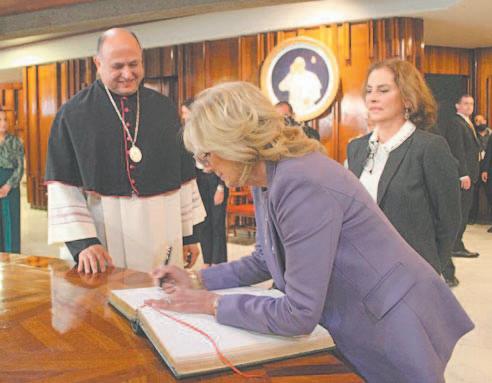 La primera parada en México de Jill Biden después de aterrizar en el AICM fue la Basílica de Guadalupe, a donde acudió acompañada por Gutiérrez Müller. En el recinto mariano, Biden colocó una veladora en uno de los altares.