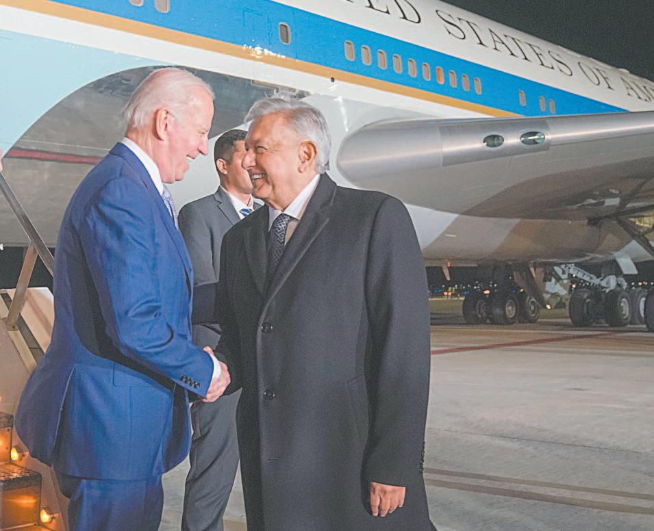 Previo a su llegada a la capital mexicana, el presidente Biden visitó ayer El Paso, Texas, en la frontera de Estados Unidos con México, donde se reunió con personal uniformado de los servicios de Aduanas e Inmigración y la Patrulla de Fronteras en el puesto de control del Puente de las Américas, un complejo de edificios de inspección y vallas que separan a los dos países.