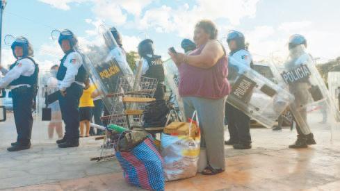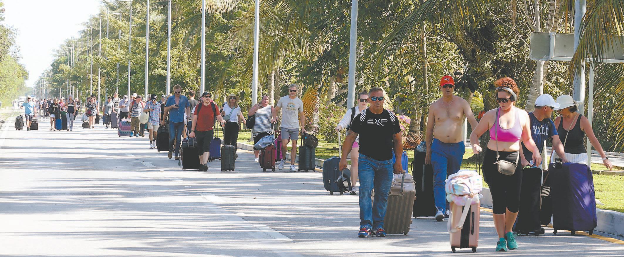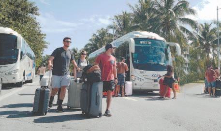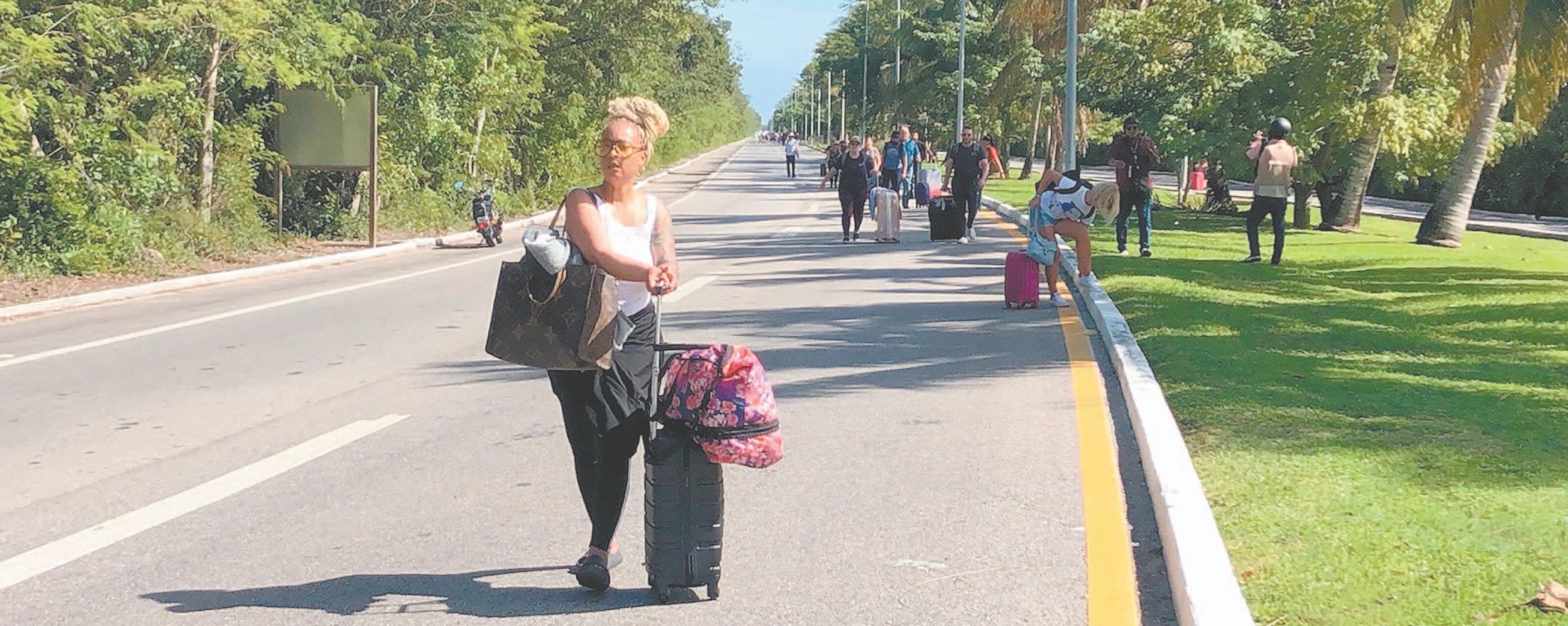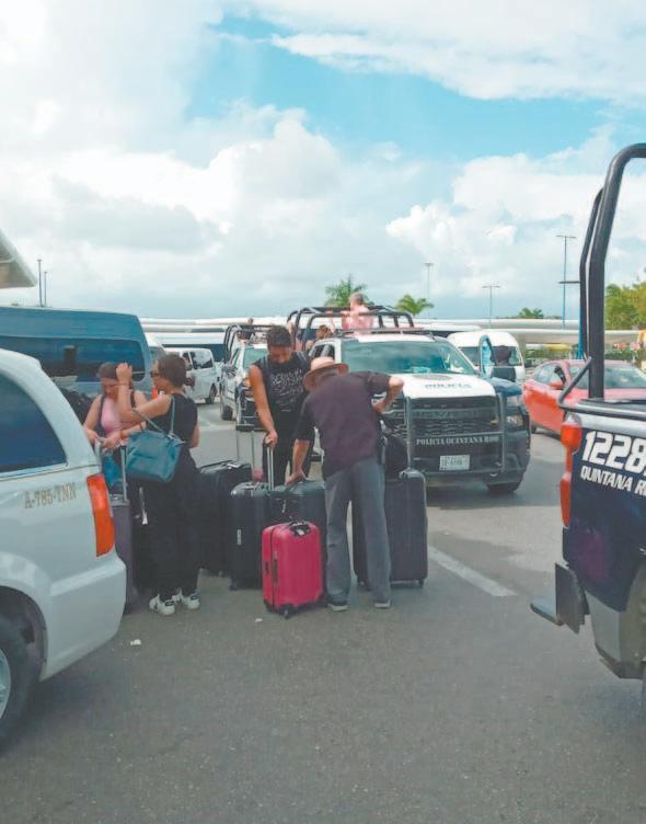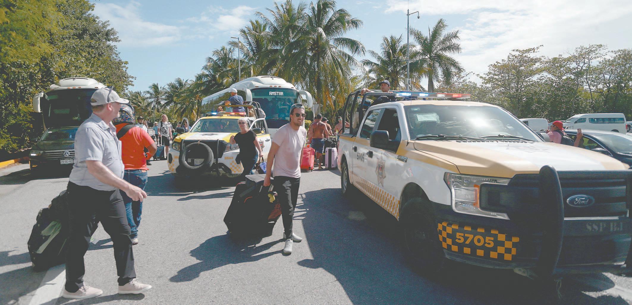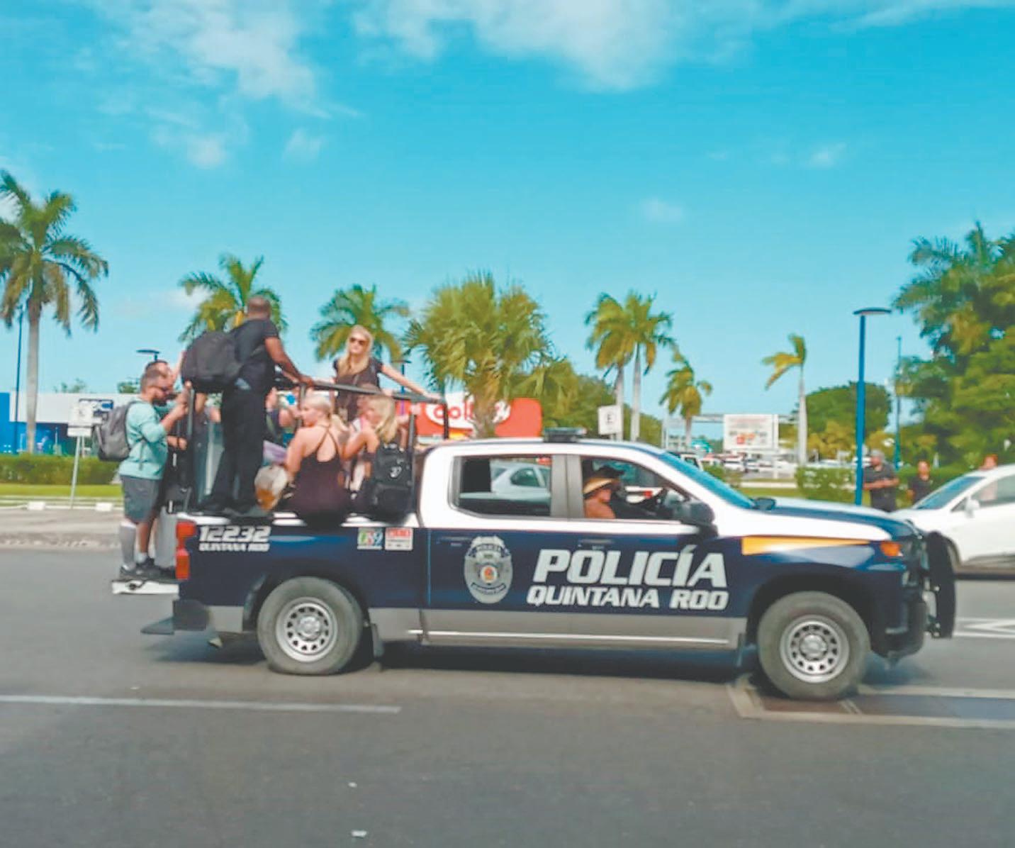 Nuevamente, los viajeros tuvieron que caminar kilómetros cargando sus maletas, lo que repercutirá en la imagen del destino, lamentaron los pobladores. (Rodolfo Flores) Los visitantes fueron movilizados a bordo de patrullas. Autobuses también apoyaron el traslado. (Rodolfo Flores) Elementos con equipo antimotines se aprestaron para llevar a cabo la reapertura vial. (POR ESTO!)obligarlos a retirar el bloqueo y dejaran de afectar la imagen del destino turístico; o en caso contrario, ellos mismo iban a quitar los autos de alquiler que bloqueaban la vía.