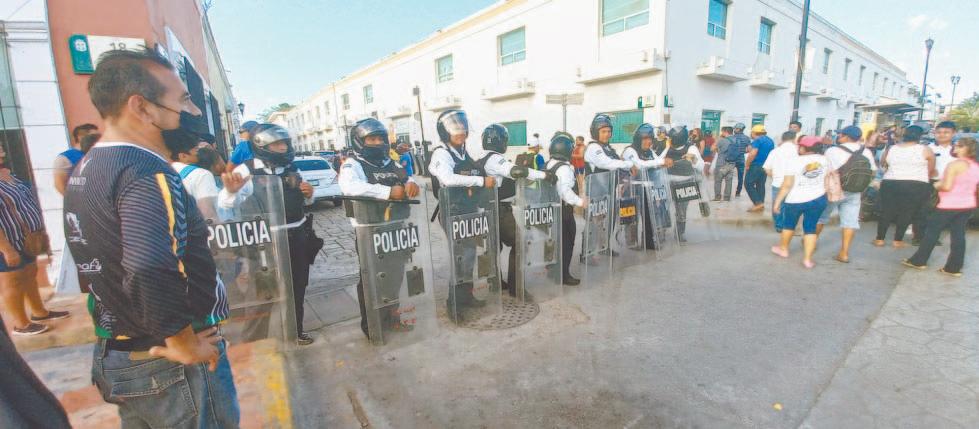 tos de la Policía Municipal con equipo antimotines y personal de la Guardia Nacional para llevar a cabo el desalojo.