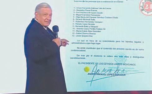 Entre los nombres se encuentra el expresidente de la Corte, el ministro Arturo Zaldívar, la senadora Olga Sánchez Cordero, el presidente de la Jucopo, Ricardo Monreal Ávila y el coronel Alejandro Flores Ramos.