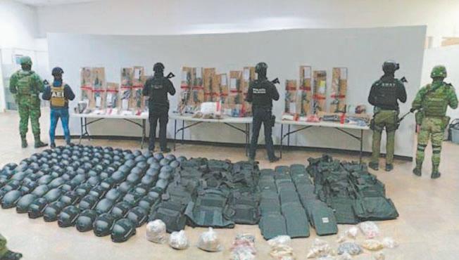 107 cascos tácticos, 60 chalecos balísticos, un vehículo y un inmueble.