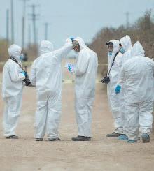 Minutos después personal de Servicios Periciales acudieron al lugar donde iniciaron con la extensa búsqueda, ya que la persona quien reportó apagó su teléfono celular y no había gente que pudiera señalar el lugar exacto donde se encontraban los supuestos cuerpos destazados.