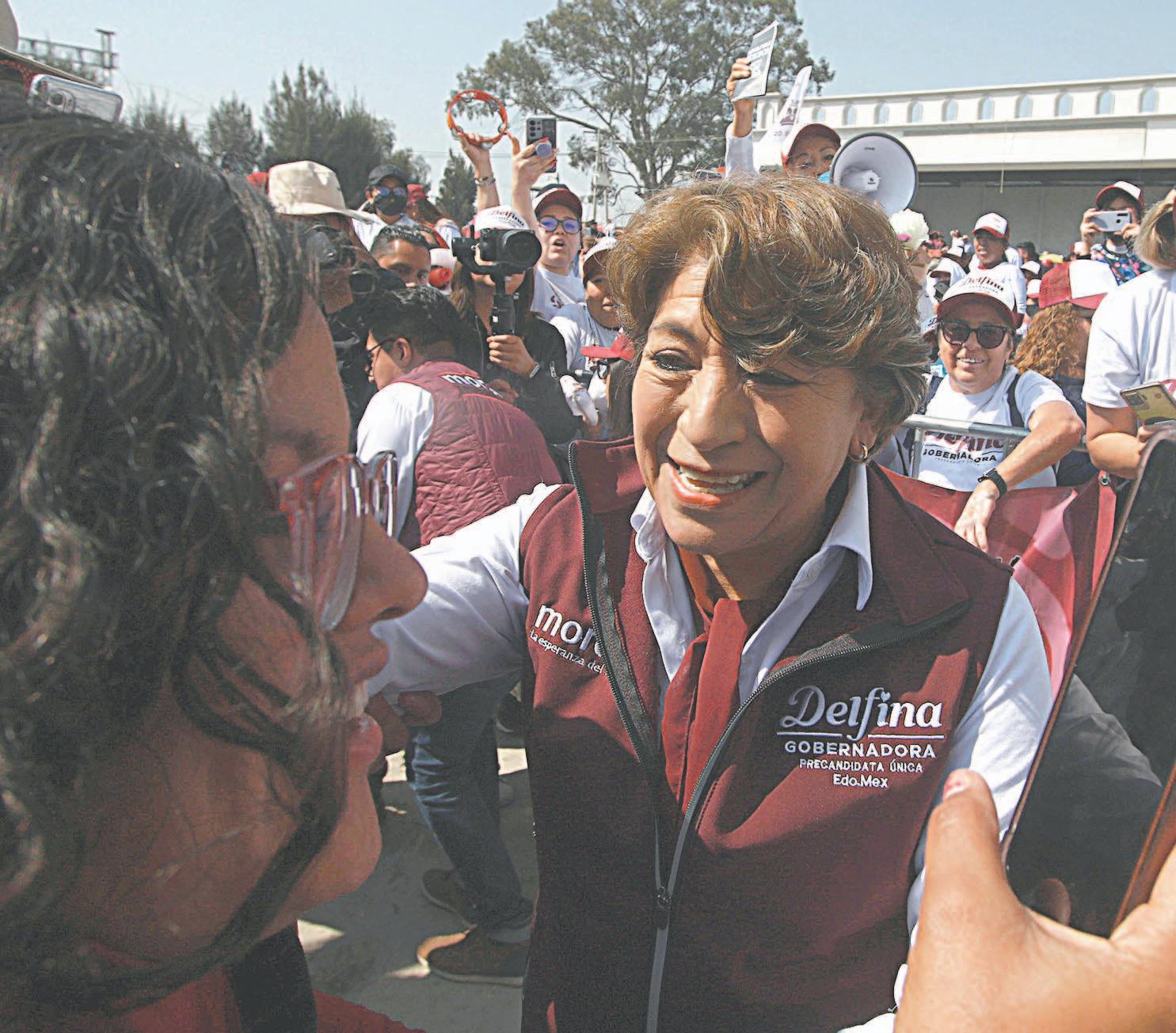 ESTADO DE MÉXICO.- Con cinco kilómetros de diferencia, las precandidatas únicas de Morena y del PRI, Delfina Gómez y Alejandra del Moran, respectivamente, cerraron ayer su precampaña para el Gobierno del Estado de México.