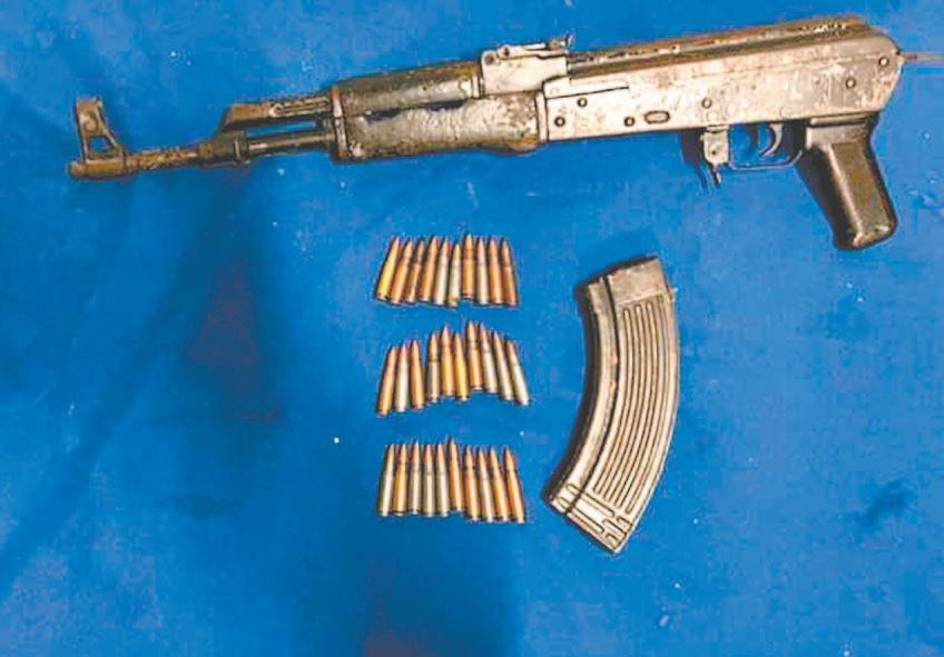 Equipado con un fusil, una pistola