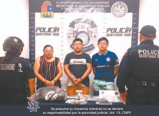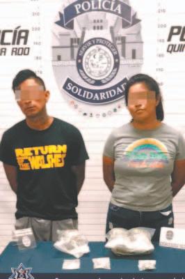 Más tarde fueron asegurados Luis “N” y Sofía “N”, de 26 y 24 años de edad, respectivamente; ambos procedentes de esta Entidad, tras ser sorprendidos manipulando posibles drogas en la calle 2, entre avenidas 85 diagonal y 85 Norte, de la colonia Ejido , y luego de una inspección de seguridad, en la que los policías encontraron en