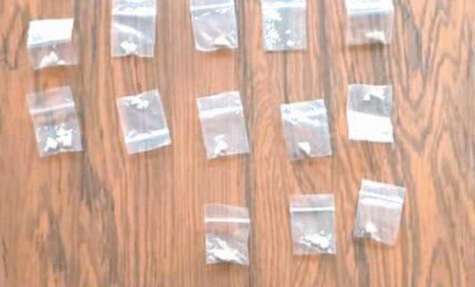 su posesión seis envoltorios con posible marihuana; uno, con lo que parecía cocaína; y uno con posible cristal