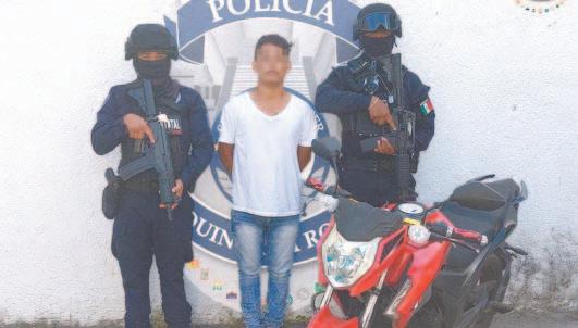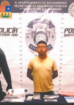 Horas después, los uniformados detuvieron a Jairo “N”, de 25 años de edad, originario de Veracruz, luego de sorprenderlo parado junto a una motocicleta marca Italika , tipo D125 , manipulando posibles drogas, mismo que tenía en su posesión dos envoltorios con lo que parecía la droga llamada cristal y uno con posible marihuana, en las avenidas Chich, entre Luis Donaldo Colosio y CTM