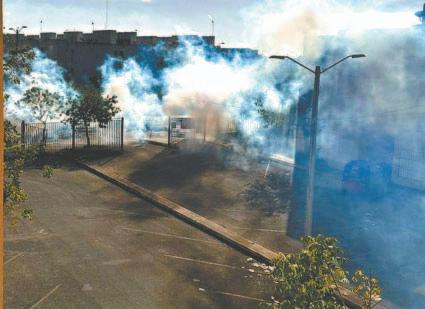Como resultaron del choque a pedradas y golpes, al menos tres agentes de la Policía Municipal resultaron heridos, dos de ellos por los proyectiles que lanzaron los habitan-