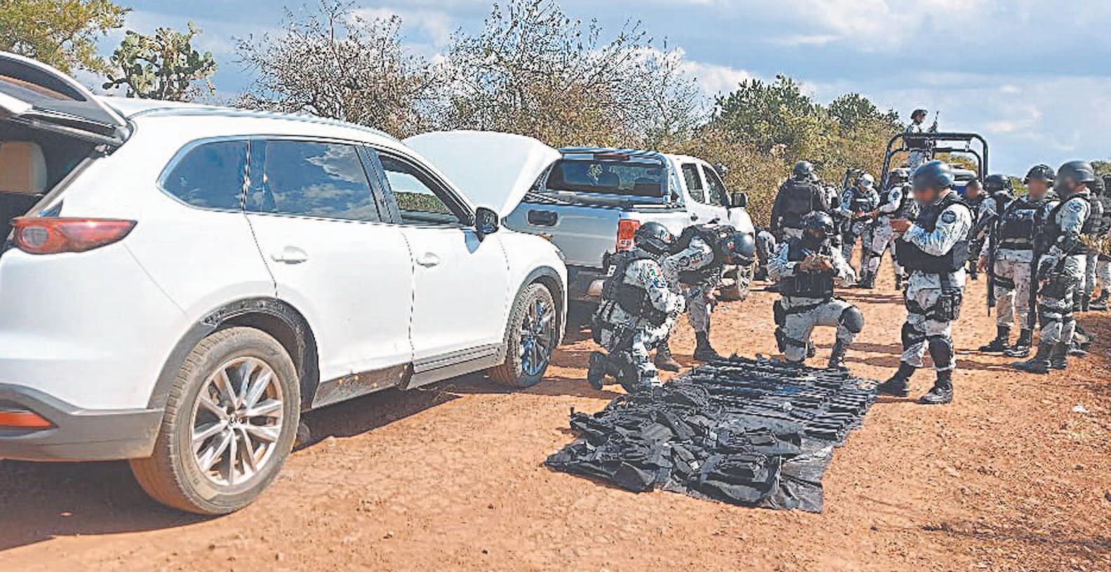 Al tener de frente los vehículos, observaron que viajaban hombres armados, quienes portaban chalecos tácticos, motivo por el cual les marcaron el alto y sin realizar un solo disparo efectuaron su detención.
