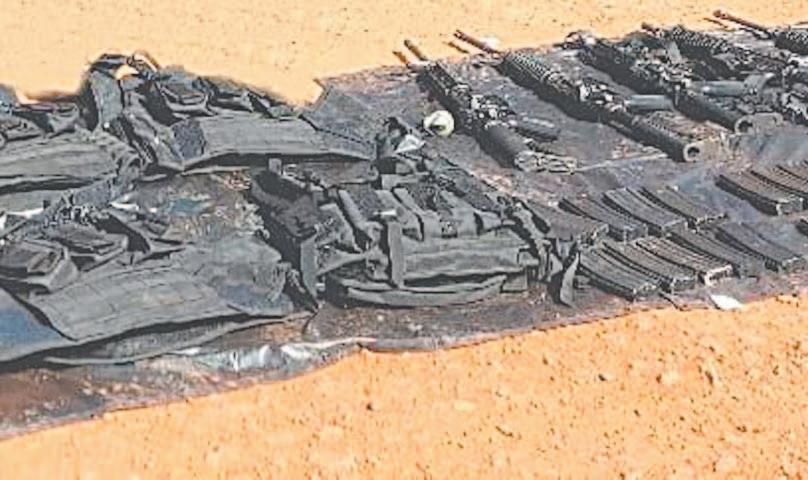 vehículos localizaron lo siguiente: siete fusiles de asalto, 41 cargadores, mil 12 cartuchos útiles, una granada de fragmentación, seis chalecos tácticos y 12 placas balísticas.