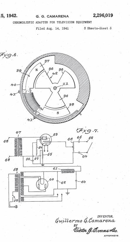 Fue en 1940 cuando se le otorgó a González Camarena la patente 40235 de televisión a colores en México y Estados Unidos. Fue a partir de ese punto que comenzó a desarrollarse en el mundo nuevos métodos y más avanzados de proyección de televisión a color.