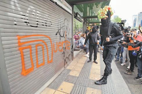 CIUDAD DE MÉXICO.- Durante la marcha para expresar el rechazo a la presencia de más de 6 mil elementos de la Guardia Nacional en las estaciones del Metro de la Ciudad de México, personas encapuchadas, presuntamente pertenecientes al Bloque Negro, causaron destrozos en varios edificios y espectaculares a su paso por Paseo de la Reforma.