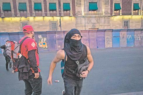 Los integrantes del Bloque Negro caminaron hasta el Zócalo capitalino, y aunque agentes de la Secretaría de Seguridad Ciudadana de la Ciudad de México (SSC-CDMX) encapsularon algunos contingentes que realizaban los destrozos y a quienes les retiraron latas de pintura y martillos, otros lograron llegar hasta el Palacio Nacional, que estaba resguardado por vallas metálicas.