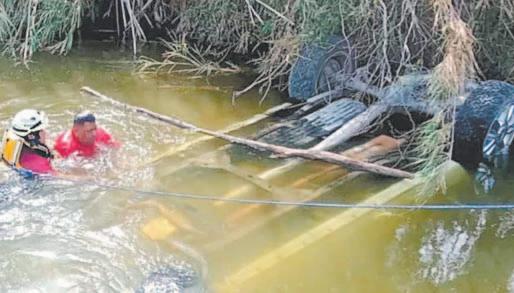 A través de un reporte anónimo al 911, se alertó a cuerpos de auxilio sobre la presencia de un vehículo volcado dentro del canal de riego.