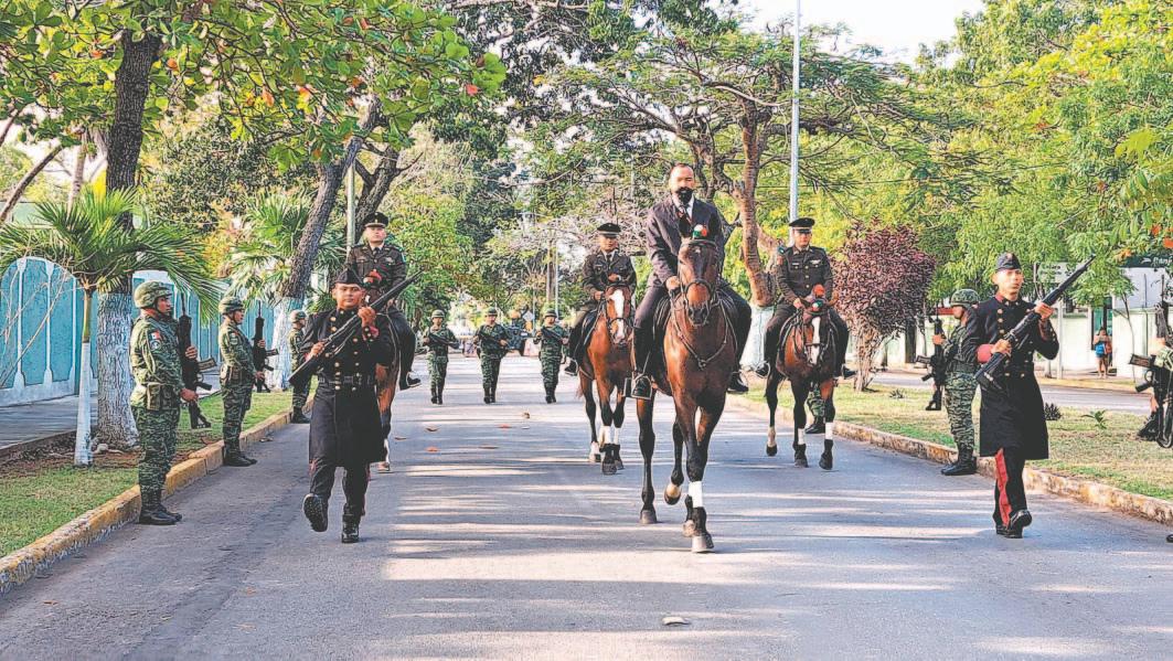 DURANTE el acto protocolario, tras un desfile por la calle de Madero hasta la plancha del Zócalo capitalino, el Presidente, en su carácter de Comandante Supremo de las Fuerzas Armadas, pasó lista a los héroes de 1847 y 1914. Develó una placa conmemorativa a las instalaciones del Cuartel Arista que se ubicaba en el Palacio Nacional, que albergó el Colegio Militar.- (POR ESTO!)