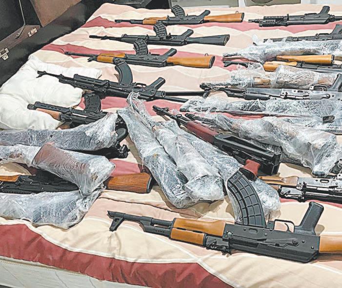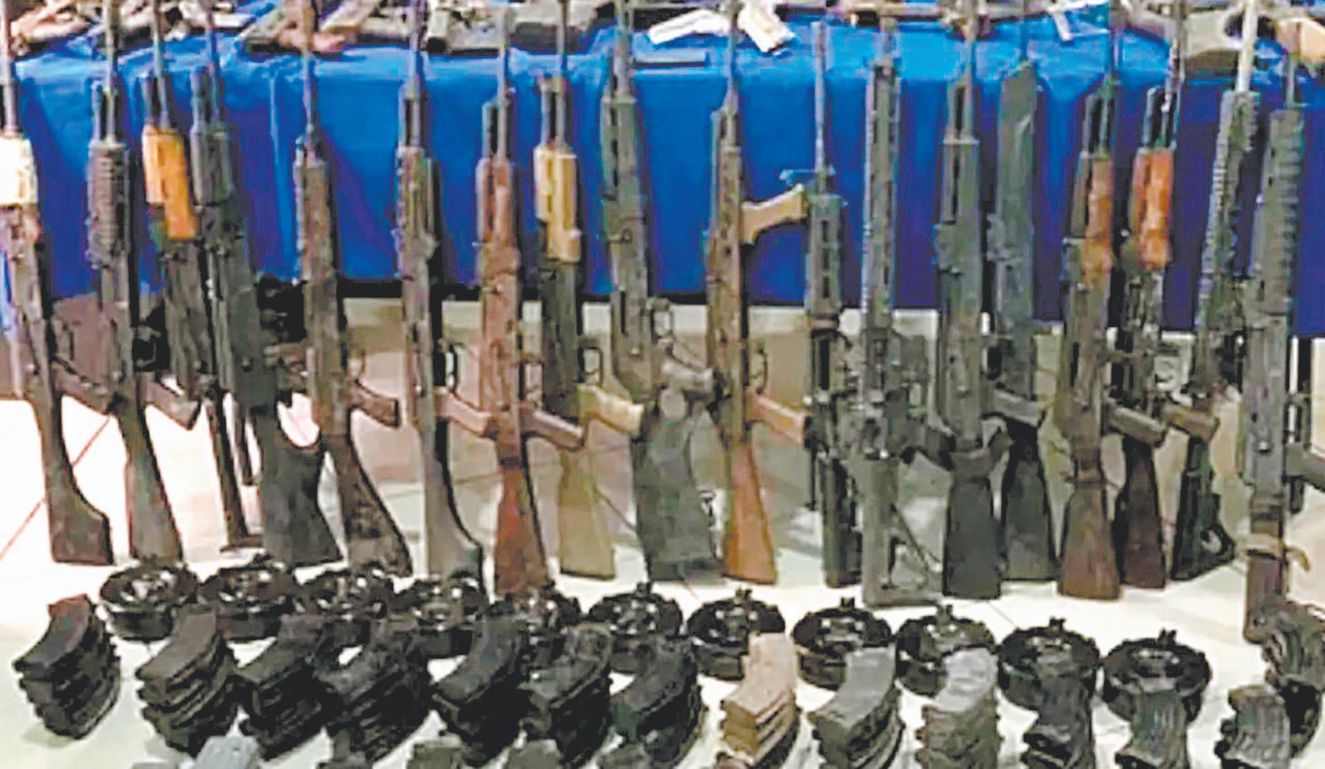 Las fuentes federales explicaron que, tras un cateo a una seguridad, se incautaron 35 fusiles de asalto AK47, mejor conocido como cuernos de chivo, 33 cargadores, mil 600 cartuchos calibre 50, capaz de penetrar chalecos antibalas y vehículos blindados, y 2 mil 600 cartuchos calibre 7.72 milímetros, para fusiles de asalto con tipos de repetición.