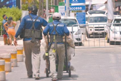 Tres personas, quienes dijeron llamarse Salatiel “N” de 24 años de edad; Estela “N”, de 31 años y Gabriel “N”, de 29 años de edad, fueron detenidos por portación de arma de fuego y delitos contra la salud, luego de ser sorprendidas cuando se hacían pasar por obreros. Los hechos ocurrieron luego que oficiales que realizaban su recorrido de prevención en las inmediaciones de la Supermanzana 5, manzana 22, avenida Carlos Nader, se percataran que en una constructora estaban dos hombres y una mujer manipulando e intercambiando unas bolsitas de plástico transparente, que en su interior contenía una sustancia de color verde con las características de la marihuana. Asimismo, al percatarse de la presencia policial dichas personas tomaron una actitud evasiva, por lo que los agentes se aproximaron y al realizar una inspección les fueron encontradas tres bolsas de plástico transparente que en su interior contenía hierba verde seca similar a la marihuana; así como un arma de fuego, tipo revolver, color negro, abastecida con cuatro cartuchos útiles, calibre .22 milimetros.