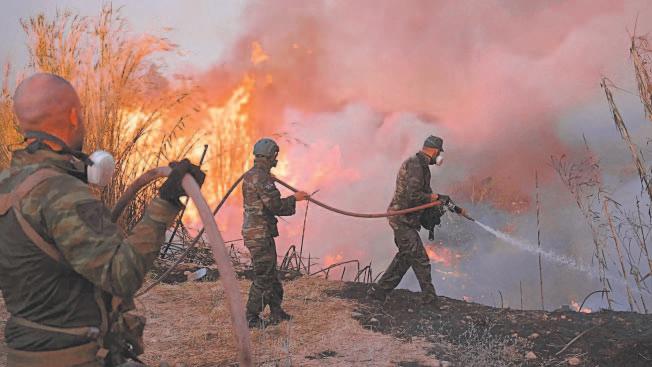 calcinado ya 10 mil hectáreas. Las autoridades hacen frente a “un incendio excepcionalmente peligroso”: “Llevamos combatiendo más de 20 horas en circunstancias dramáticas”, sostuvo el ministro de Crisis Climática y Protección Civil, Vassilis Kikilias. Más de 700 bomberos, con 200 camiones, 17 aviones y 15 helicópteros cisterna operaron ayer en una amplia área al Norte y el Este de la capital para tratar de detener el fuego que se inició el domingo.
