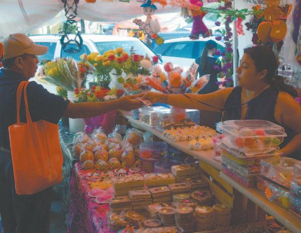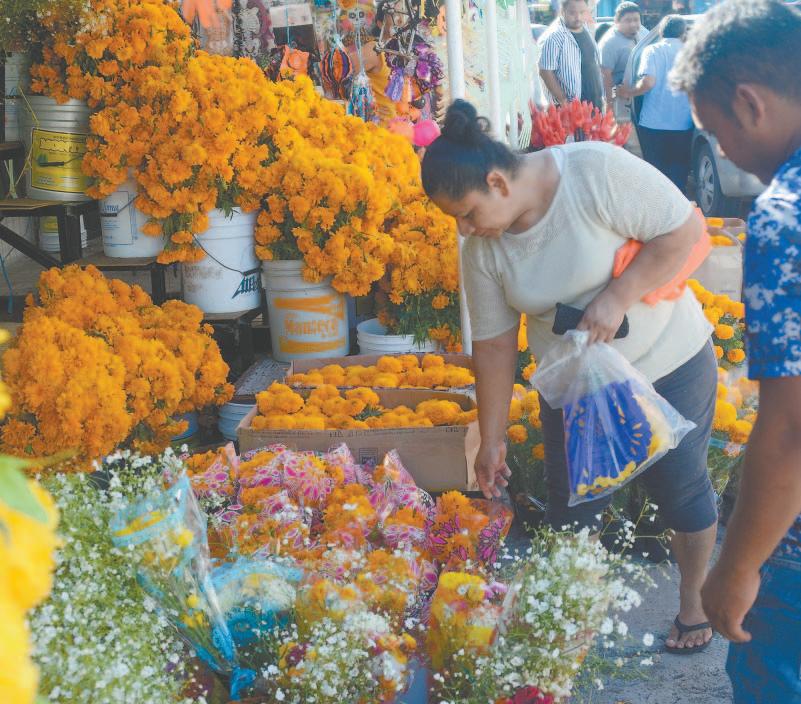 Sí, estamos vendiendo más y de todo; incienso, calaveritas, orégano y fl ores de todo tipo para hacer bien las ofrendas y altares a los muertos, y eso que apenas esperábamos que fuera hasta mañana, pero esto está lleno y nos pone felices”.